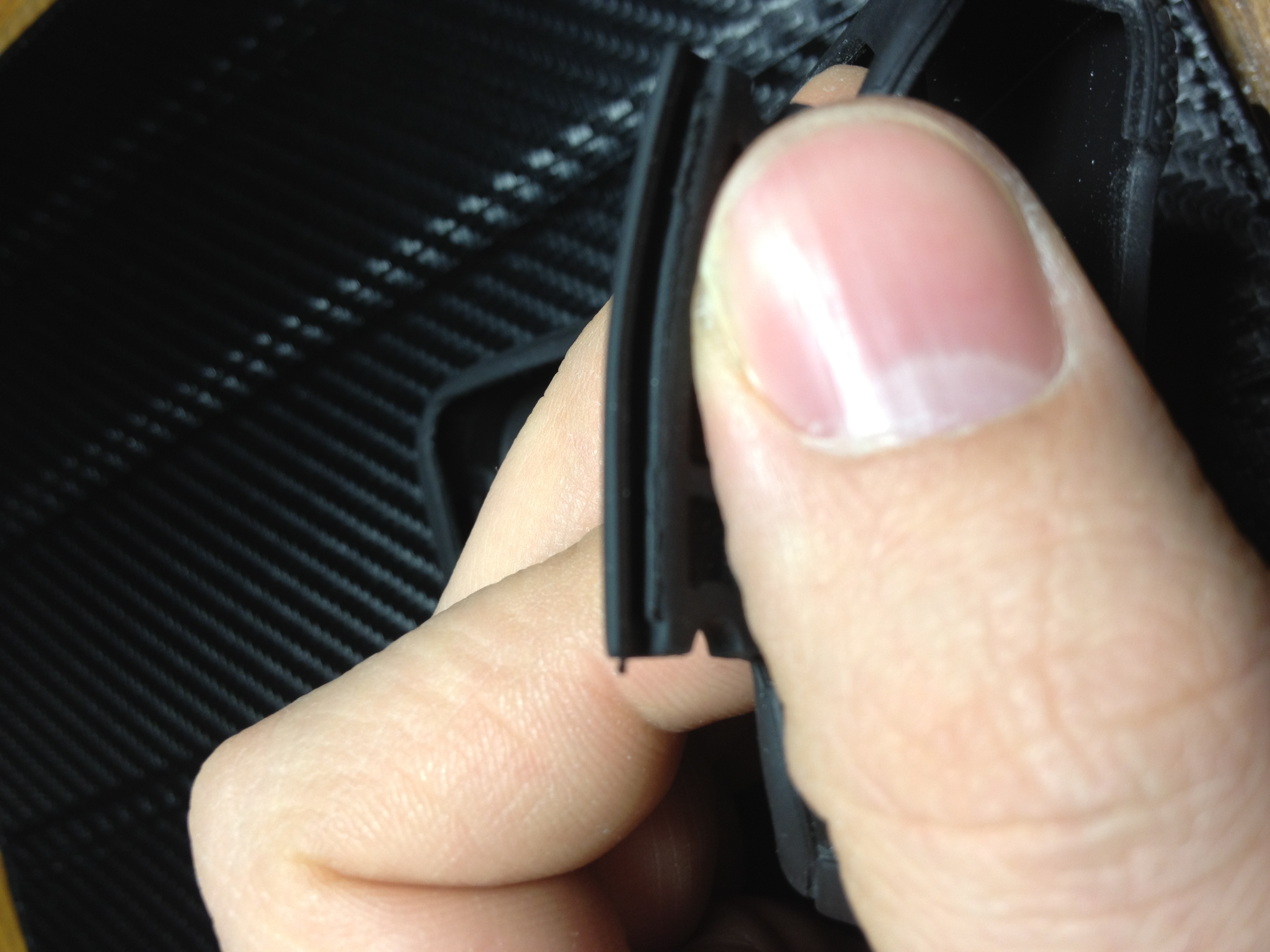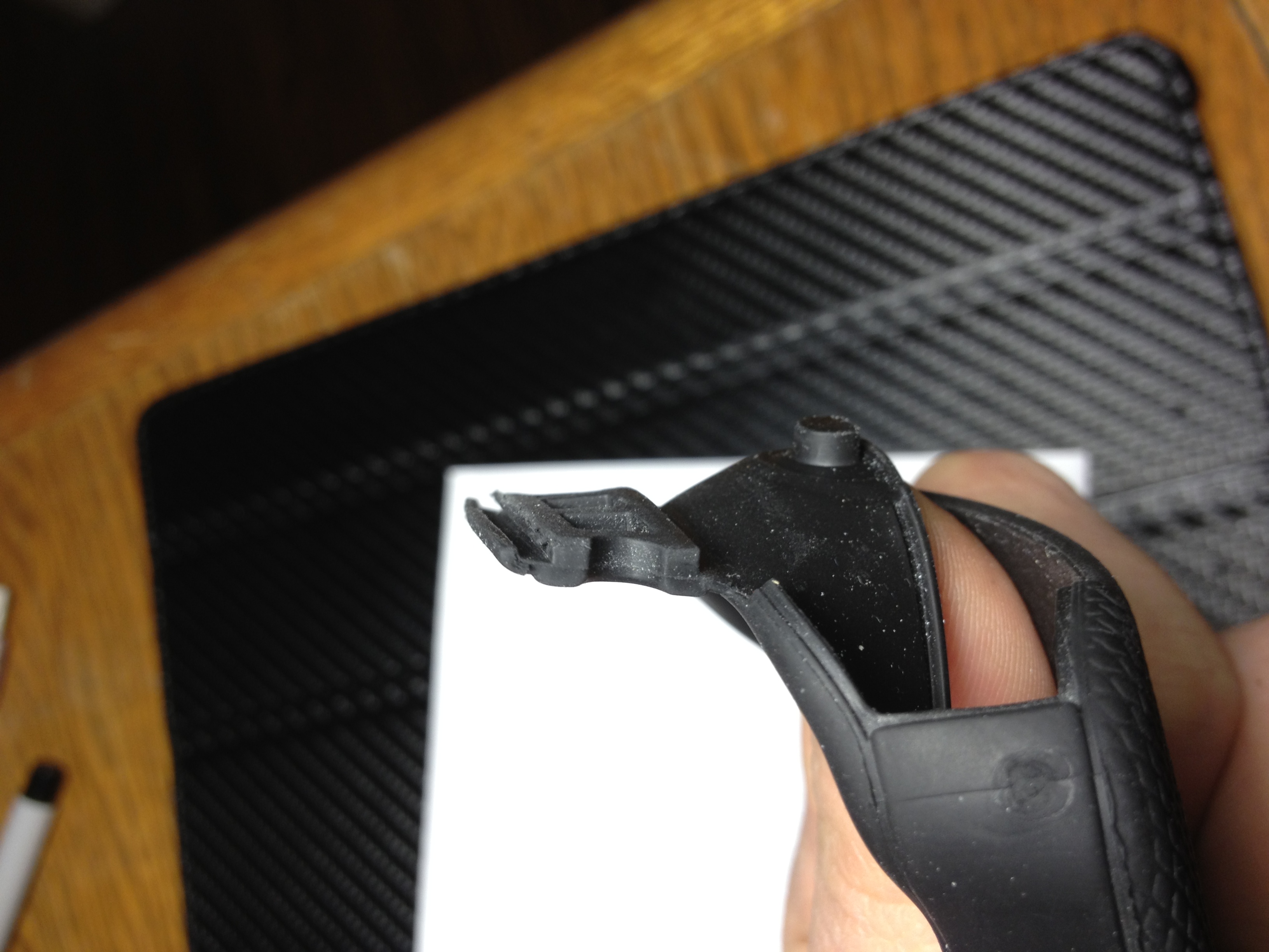 The OtterBox Warranty Department asked that I provide them with pictures of the problematic OtterBox I purchased. Here they’re, as you can see the bottom iTunes Port cover has a small rubber line that is suppose to fit into the hard shell case, mine was defective upon receiving it. It worked fine for a while then just stopped working completely.